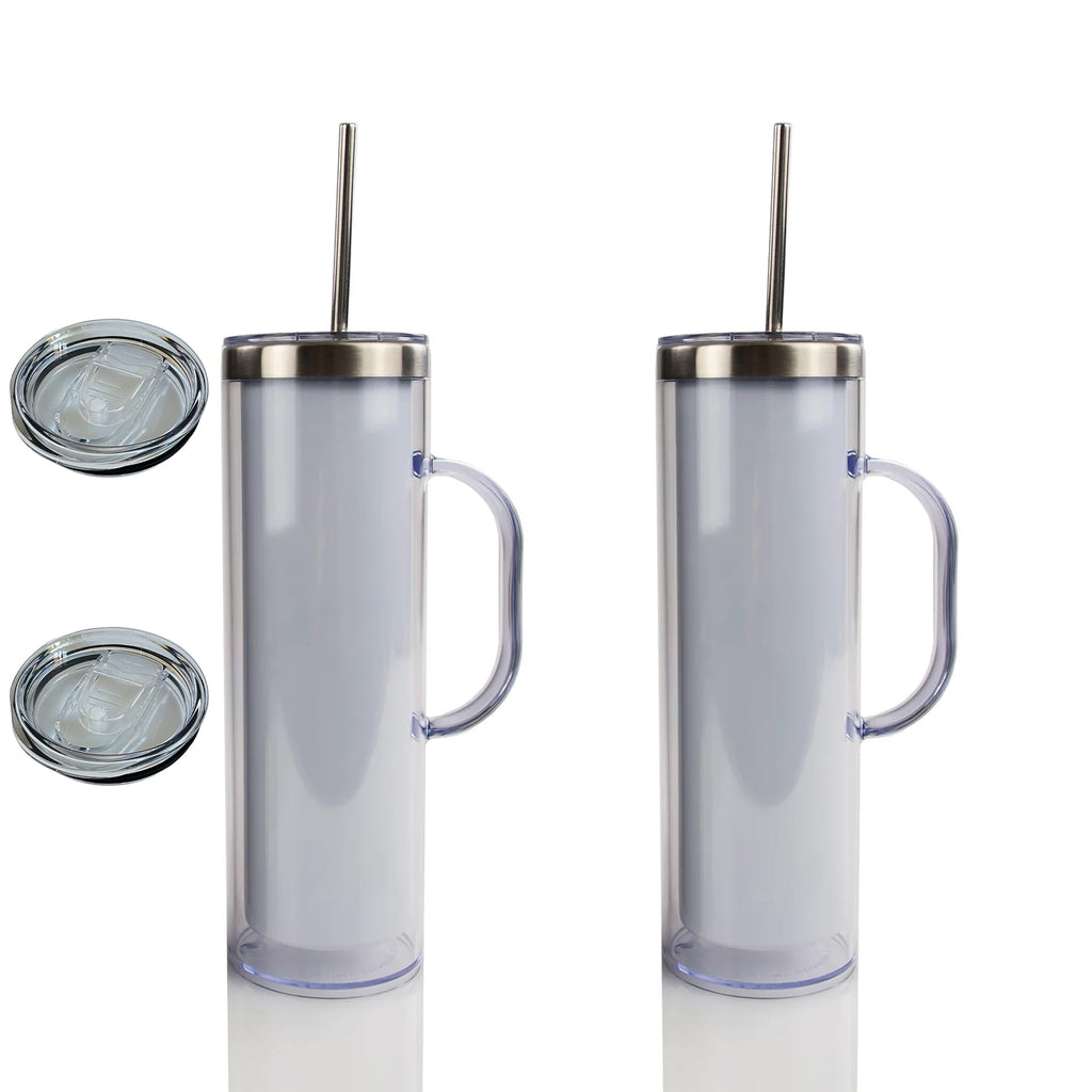 25 Pack Handle Avaliable 20oz White Sublimation Snow Globe Stainless Steel Inner Acrylic Outer Staight Tumbler_GGblanks