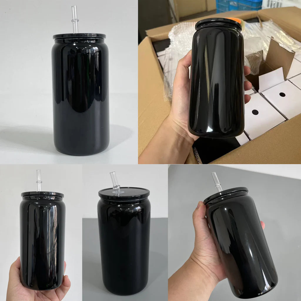 50 Pack 16oz Black Glass Can with PP Lids_GGblanks