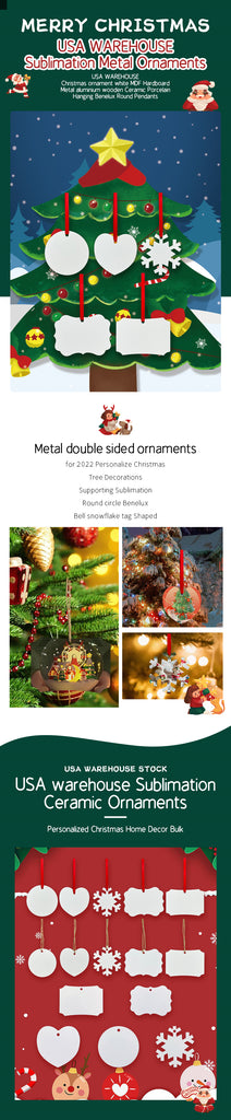 200 Pack YIPAI LPGJ001 USA Warehouse Christmas Supply Wholesale Aluminum Ornaments With Red Rope And Hemp Rope Mix 5 Styles Sold By Case