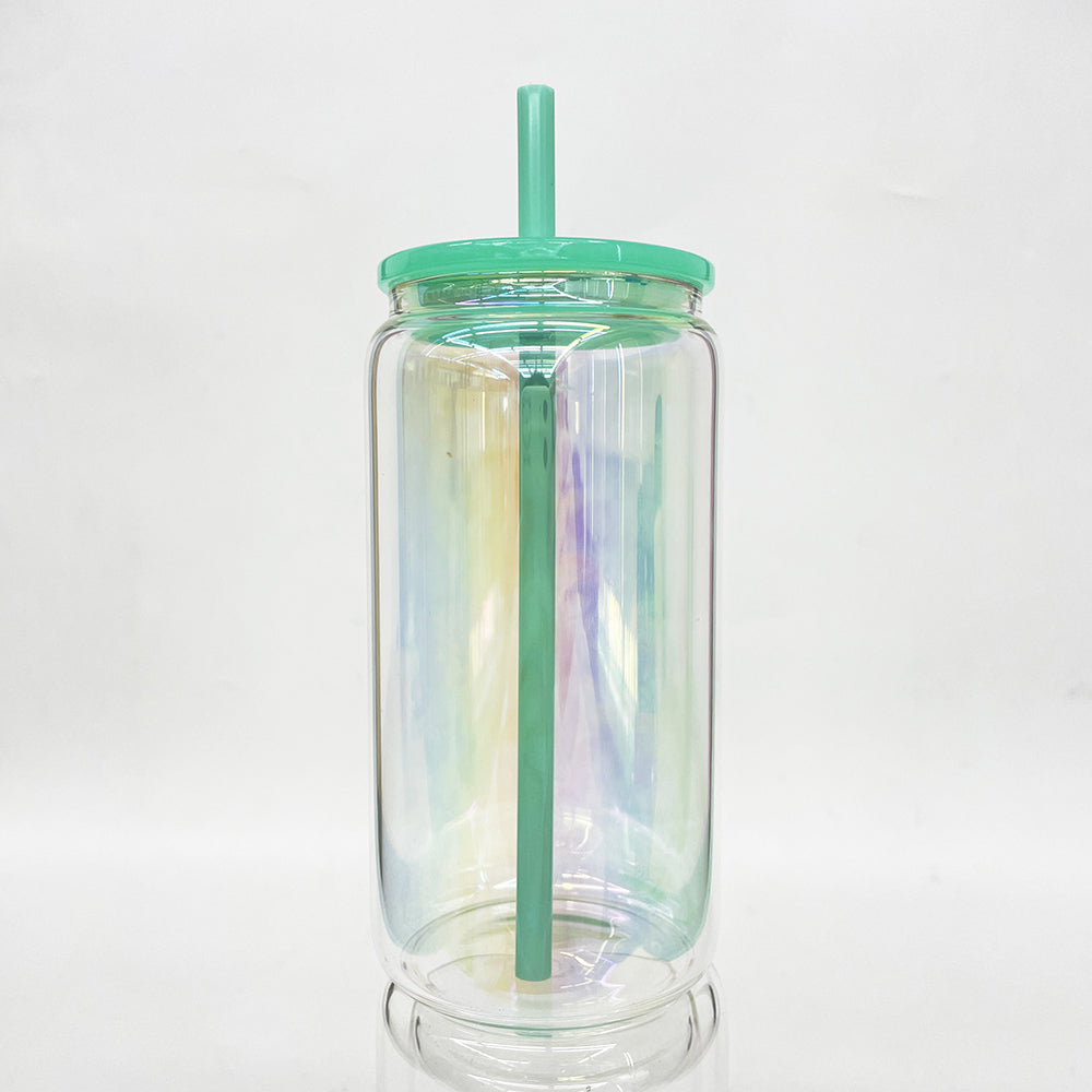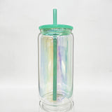 🔥😍16oz Rainbow Plated Glass Cans with Colorful Plastic Lids for Sublimation and UV DTF Wraps_GGblanks