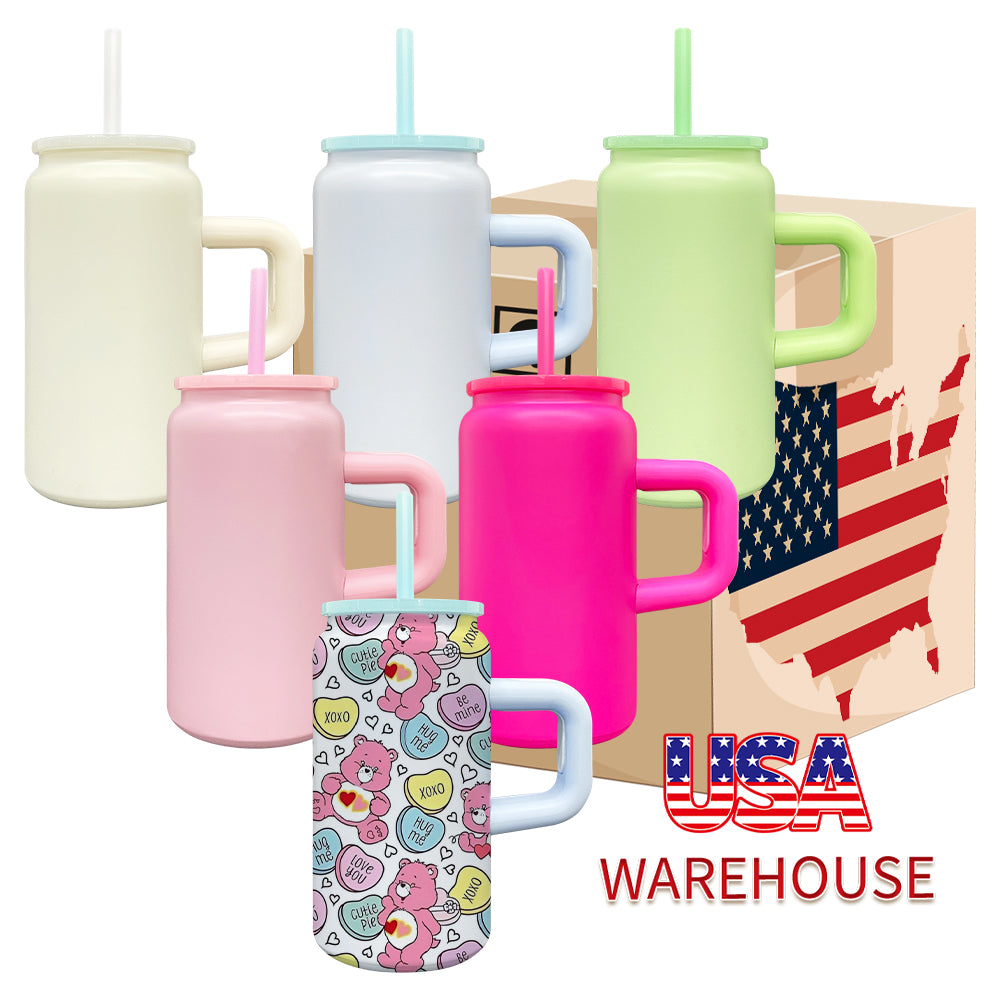25 Pack 16oz Stainless Steel Can with Handle Hot Pink White Blue Green Mugs for Blank Sublimation Kids_GGblanks