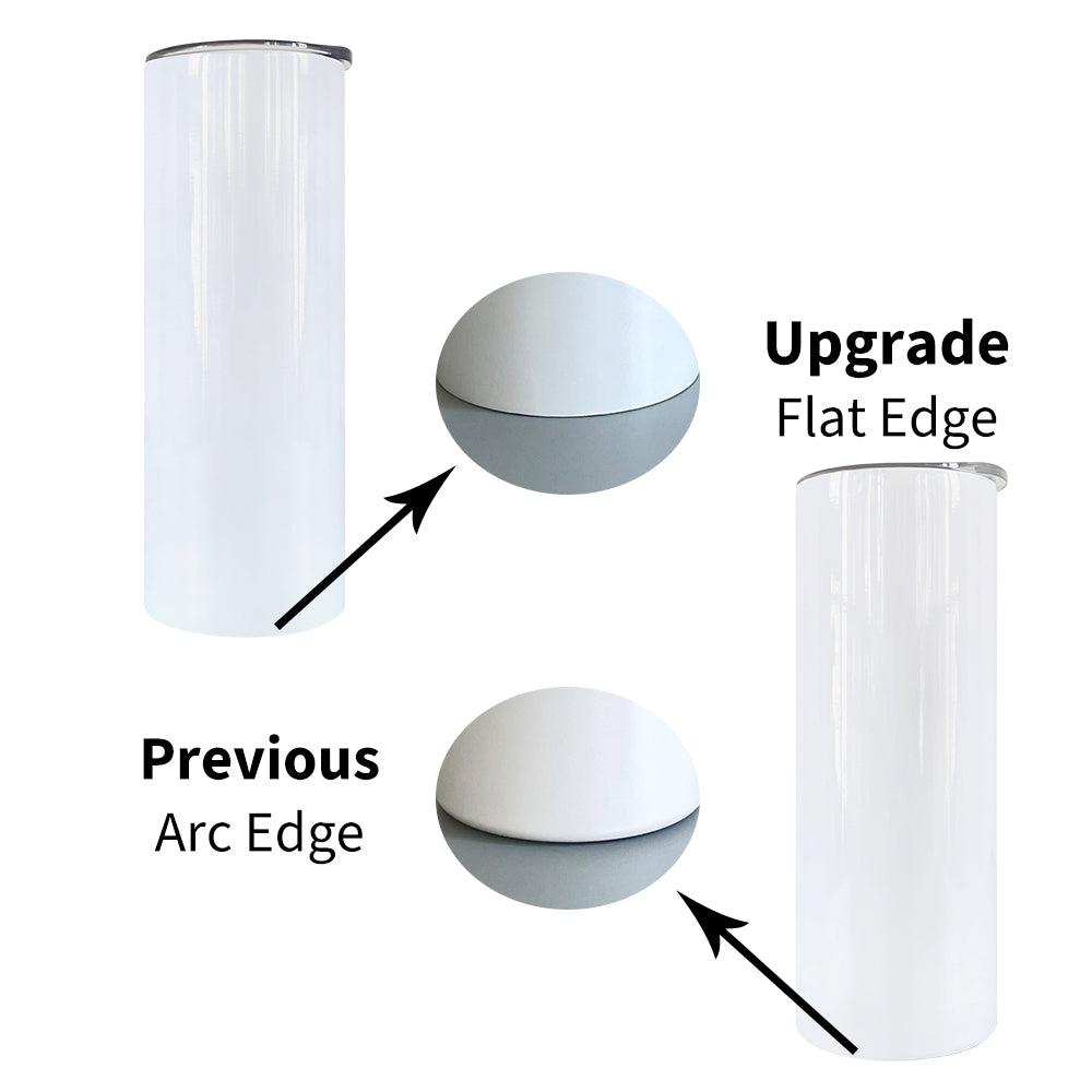 50 Pack 20oz Skinny Tumblers 90 Degree Flat Edge Inside Seamless Stainless Steel White Blank Sublimation Straight Tumbler With Plastic Straw & Black Silicone Gasket_GGblanks